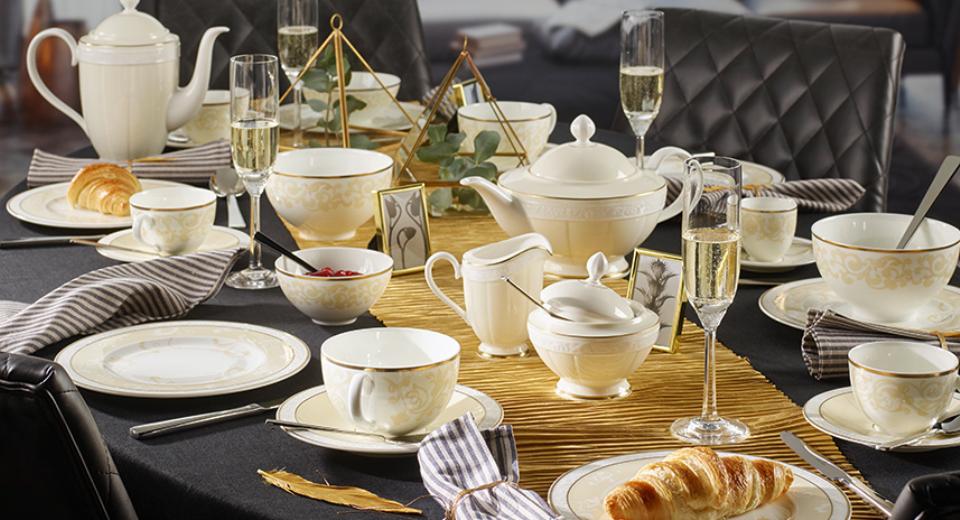 Коллекция Ivoire от Villeroy & Boch - это изысканный костяной фарфор высочайшего качества, украшенный позолотой. Благодаря удачному сочетанию белоснежного фарфора, нежных кремовых оттенков и красивейшей росписи ваш стол всегда будет выглядеть изысканно и утонченно. Будь то особенный торжественный прием или домашнее чаепитие в кругу самых близких людей - эффектные тарелки с нежными мотивами и шикарная супница, а также роскошные чашки, подчеркнутые утонченными блюдцами, - каждый предмет коллекции Ivoire доставит вам истинное удовольствие от наслаждения роскошью.