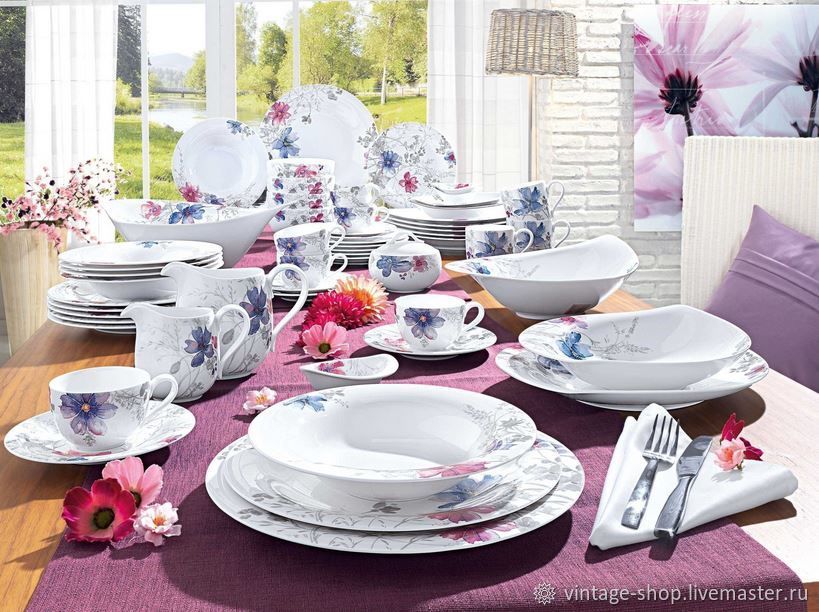 Цветочный декор Mariefleur Gris с одной стороны, обыгрывается романтично, а с другой по-современному минималистичен и всегда элегантен.Нарисованные легкой рукой элементы мотивов облагораживают эту посуду из фарфора класса премиум. Цветовые комбинации, необычные для стиля кантри, привлекают к себе все внимание.