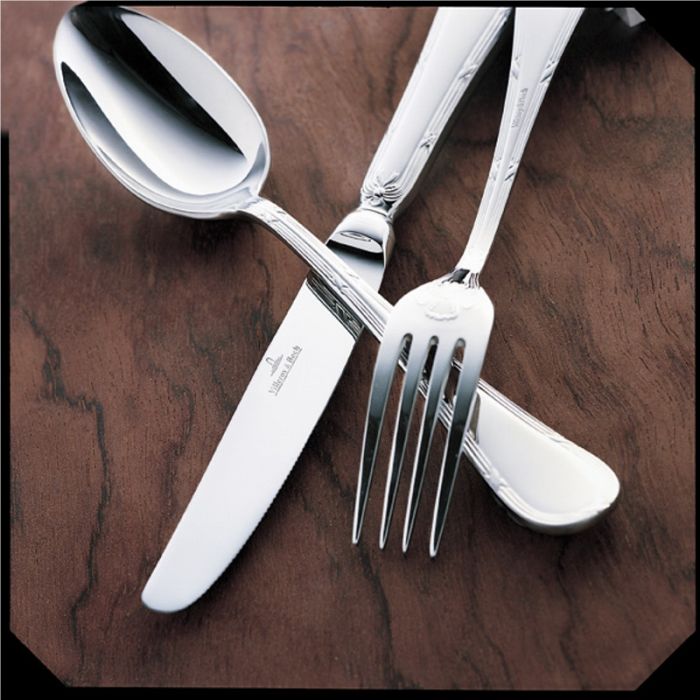 Столовые приборы 'Kreuzband Septfontaines' от Villeroy & Boch изготовлены из высококачественной стали 18/10. Ручки каждого изделия украшены филигранным рисунком, который являет фирменным знаком коллекции. Элегантный мотив придает столовым приборам оттенок эпохи барокко.